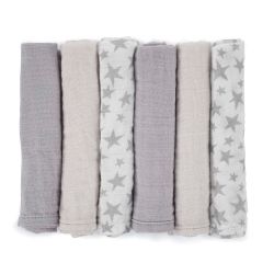 Pack de 6 muselinas de bambú multiuso de Jané (35 x 35 cm). Perfectas como babero, toallita, doudou, paño para el reflujo o toallita de cambio.