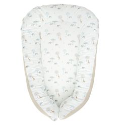 Cuna nido reductor de la colección Happy Forest (blanco/lino) de Bimbidreams. Tejido de calidad certificado OEKO-TEX, fabricado en España.