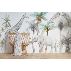 Muselina de bambú 120x120 cm de la colección África (blanco) de Bimbidreams. Tejido de calidad certificado OEKO-TEX, fabricado en España.