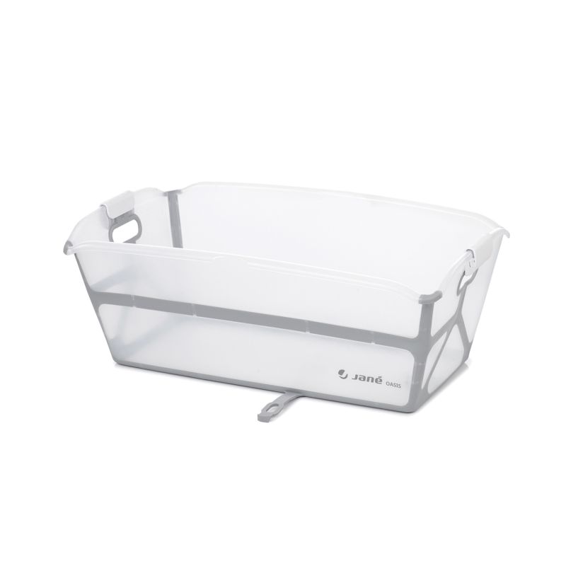 La Bañera plegable Oasis de Jané (referencia 6632) es una bañera para bebés de diseño exclusivo español que acompaña al niño desde el nacimiento hasta los 4 años (0-12 meses sobre el soporte opcional Stand, y como bañera independiente en adelante). Jané, fabricante con sede en Palau-solità i Plegamans (Barcelona) desde 1932, la diseña con una característica única: al plegarla, la base NO se dobla, lo que aporta mayor estabilidad que las bañeras plegables tradicionales y evita que el agua se filtre por la junta. Se reduce hasta solo 12 cm de grosor, cabe detrás de una puerta o en un armario estrecho. Pesa 1,5 kg, mide 68 × 42 × 26 cm abierta y está homologada bajo la norma europea EN 17072:2018.