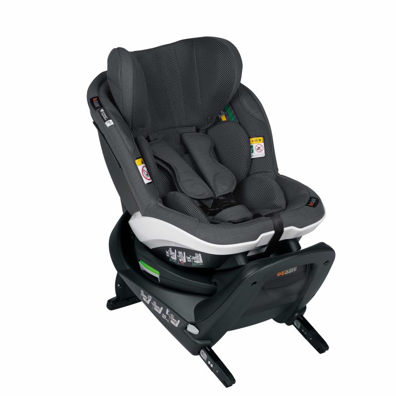 La BeSafe iZi Turn M i-Size es la silla de coche giratoria 360° de la gama BeSafe para la etapa de 61 a 105 cm (aproximadamente desde los 6 meses hasta los 4 años, hasta 18 kg). Permite instalar al niño a contramarcha durante todo el periodo de uso (lo más seguro) pero también ofrece la posibilidad de ponerlo a favor de la marcha desde los 88 cm o desde los 15 meses cuando la familia lo prefiera — algo que la hermana Twist M no permite. La rotación completa de 360° hace que meter y sacar al niño del coche sea mucho más cómodo, especialmente si lo haces varias veces al día en trayectos cortos.