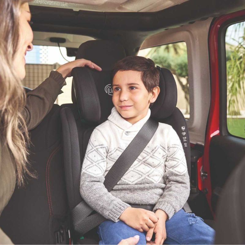 MS Beta i-Size R129 para peques de 105 a 150 cm. Fijación ISOFIX, protección lateral SPS y reposacabezas regulable. Además, se convierte en alzador quitando el respaldo desde 135 cm.