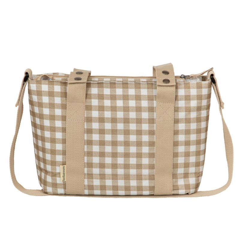 Bolso pañalera crossbody con cambiador de la colección Vichi (blanco/lino) de Bimbidreams. Tejido de calidad certificado OEKO-TEX, fabricado en España.