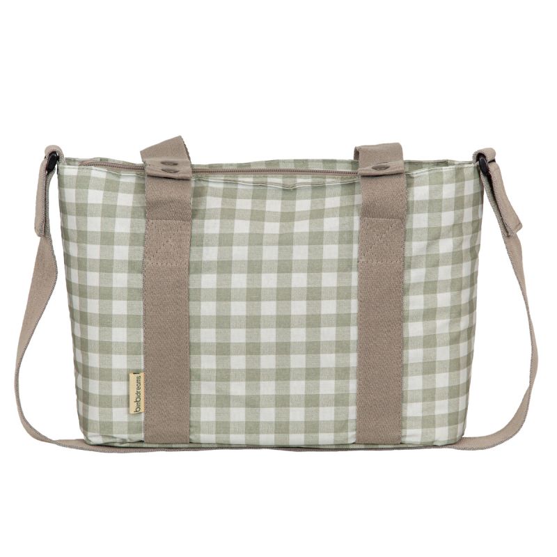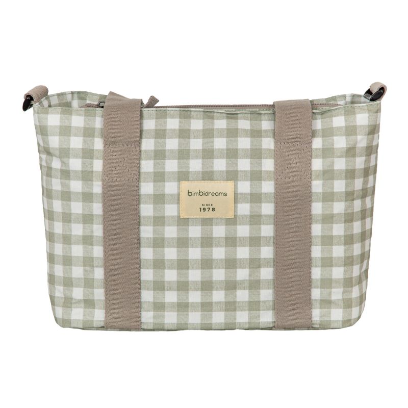 Bolso pañalera crossbody con cambiador de la colección Vichi (blanco/verde) de Bimbidreams. Tejido de calidad certificado OEKO-TEX, fabricado en España.