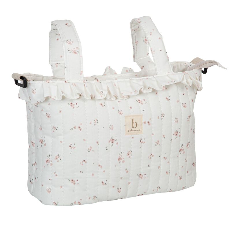 Bolso pañalera crossbody de la colección Monet (blanco/rosa) de Bimbidreams. Tejido de calidad certificado OEKO-TEX, fabricado en España.