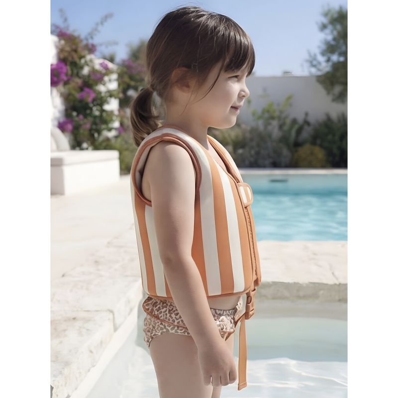 El chaleco flotador infantil Formentera de Bimbidreams es un chaleco de flotación diseñado para niños de 1 a 3 años que están aprendiendo a sentirse cómodos en el agua. Ayuda al pequeño a mantenerse a flote durante las primeras experiencias en la piscina o la playa, siempre bajo supervisión adulta, y le da confianza para moverse en el agua.