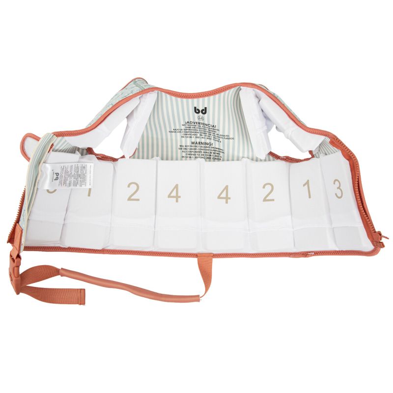 IMPORTANTE: este chaleco es una ayuda a la flotación, NO sustituye la vigilancia del adulto en ningún momento. Nunca dejes a tu bebé solo en el agua, ni siquiera con el chaleco puesto.