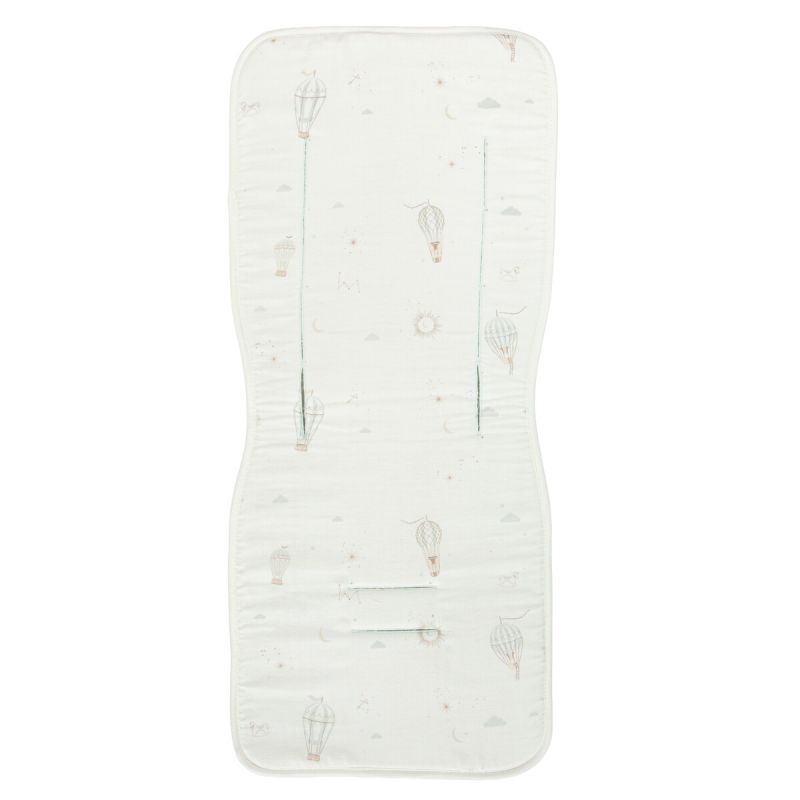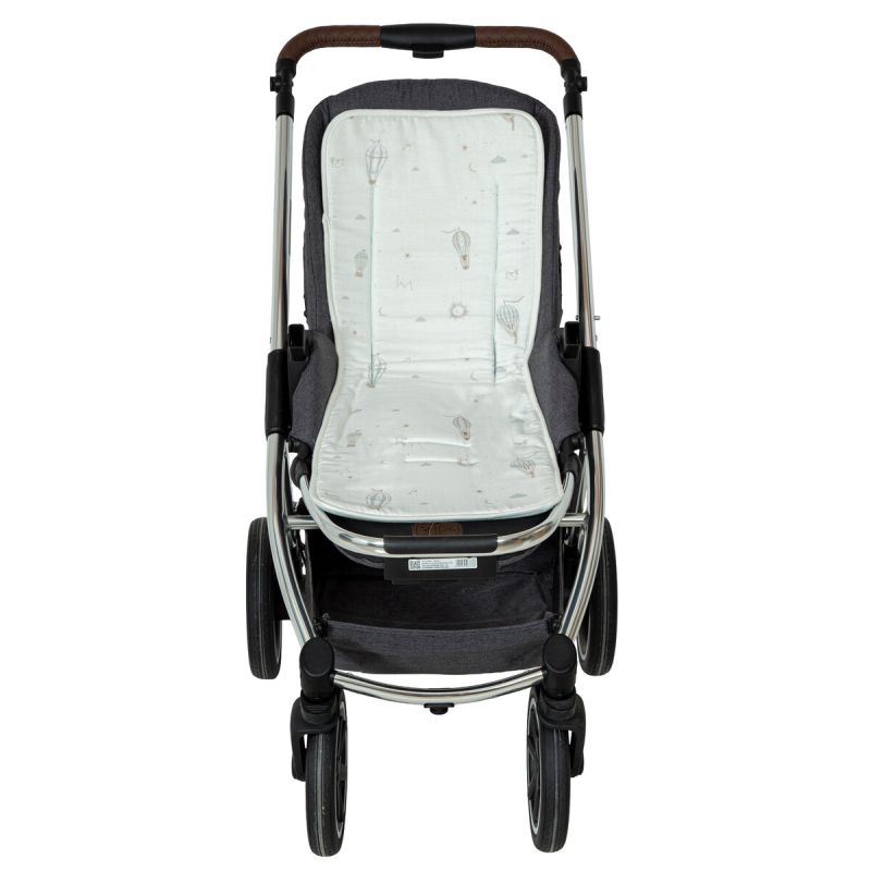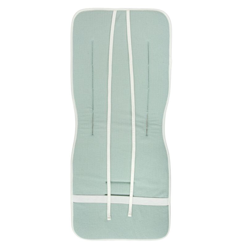 Colchoneta silla de paseo de la colección Blue Sky (blanco/verde) de Bimbidreams. Tejido de calidad certificado OEKO-TEX, fabricado en España.