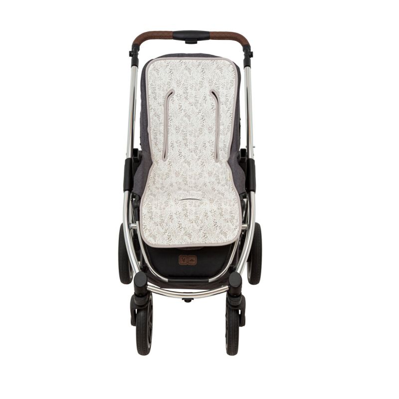 Colchoneta silla de paseo de la colección Dots (blanco/lino) de Bimbidreams. Tejido de calidad certificado OEKO-TEX, fabricado en España.