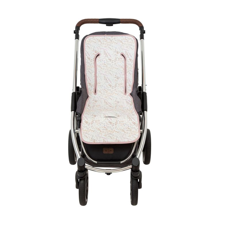 Colchoneta silla de paseo de la colección Niza (blanco/lila) de Bimbidreams. Tejido de calidad certificado OEKO-TEX, fabricado en España.