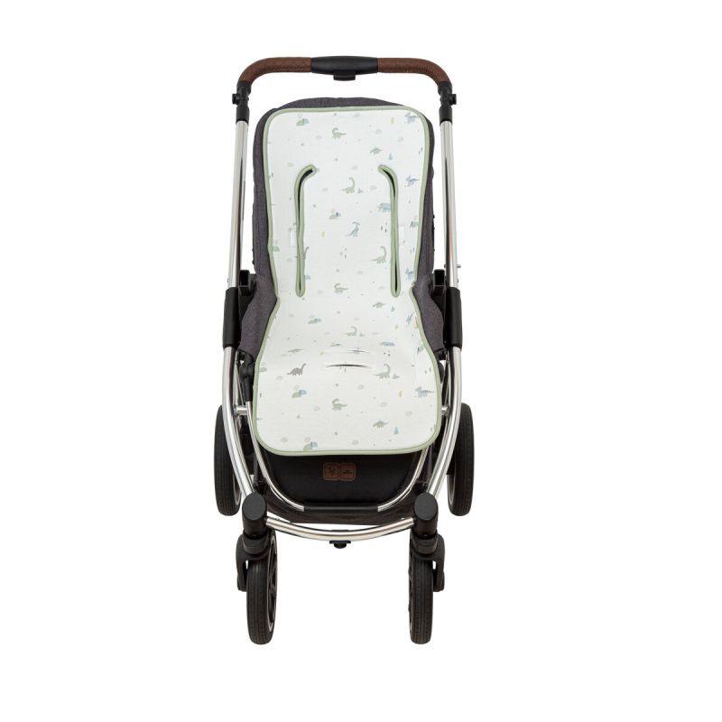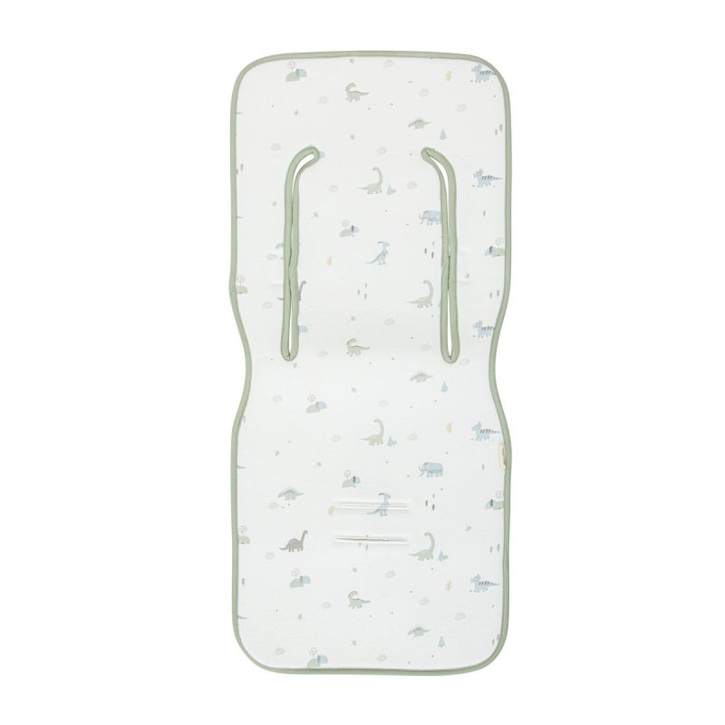Colchoneta silla de paseo de la colección Trex (blanco/verde) de Bimbidreams. Tejido de calidad certificado OEKO-TEX, fabricado en España.