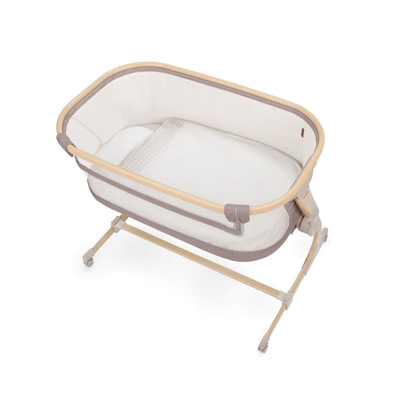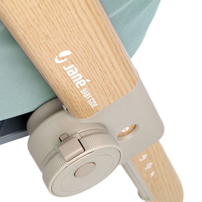 Cuna colecho Baby Side de Jané: 6 alturas regulables (38,5-50 cm), ruedas 360° con freno, ventanas de malla, colchón transpirable y textil completo incluido. Uso desde el nacimiento hasta aprox. 9 kg.