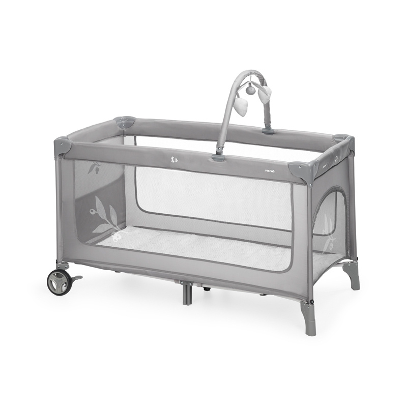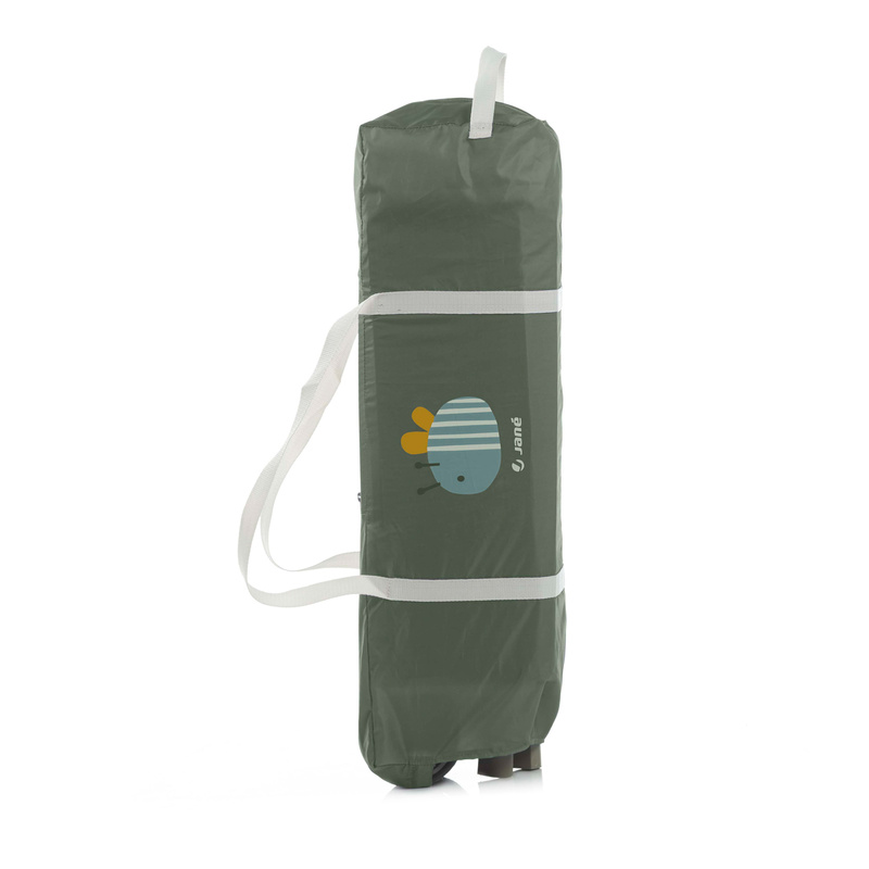 Cuna de viaje One Level Toys de Jané: gatera con cremallera, arco con peluches, ventanas de malla, bolsa de transporte incluida. Uso de 0 a 36 meses. Plegado compacto de 24 x 24 x 81,5 cm.