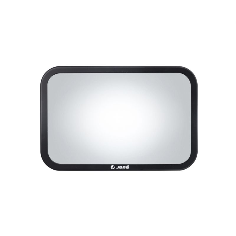 Espejo retrovisor XL para bebé de Jané: tamaño aumentado para una visión más amplia. Cristal anti-añicos, rótula regulable y bloqueo reforzado.