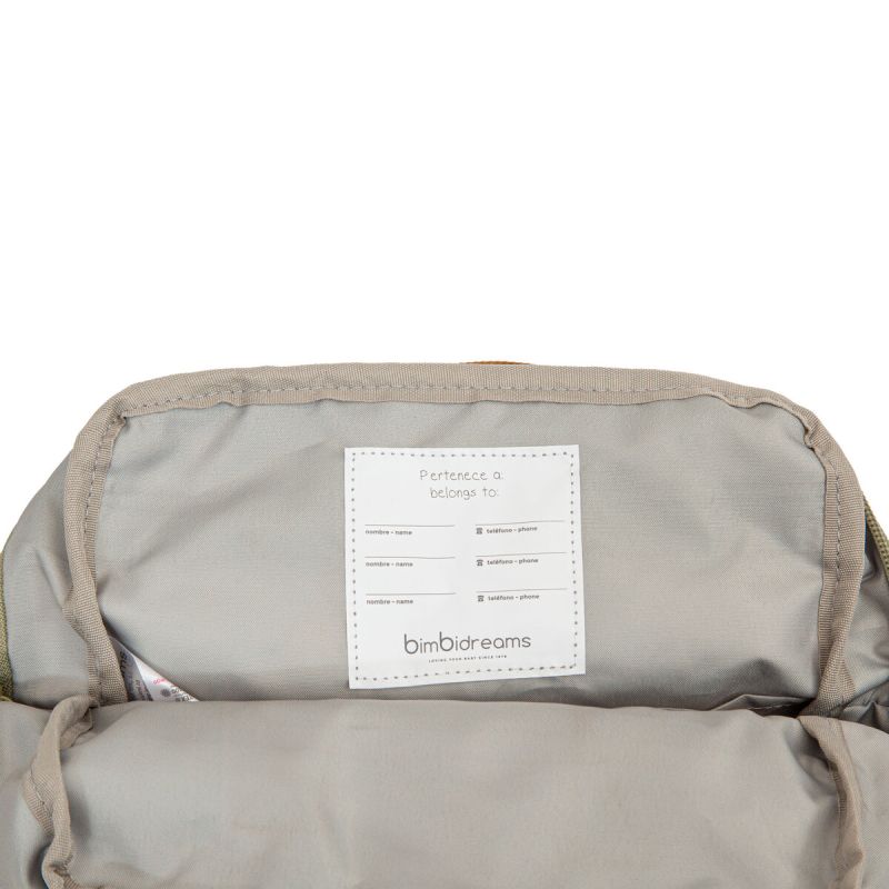 Mochila mini 20x29x13 cm de la colección Animalia (lino) de Bimbidreams. Tejido de calidad certificado OEKO-TEX, fabricado en España.