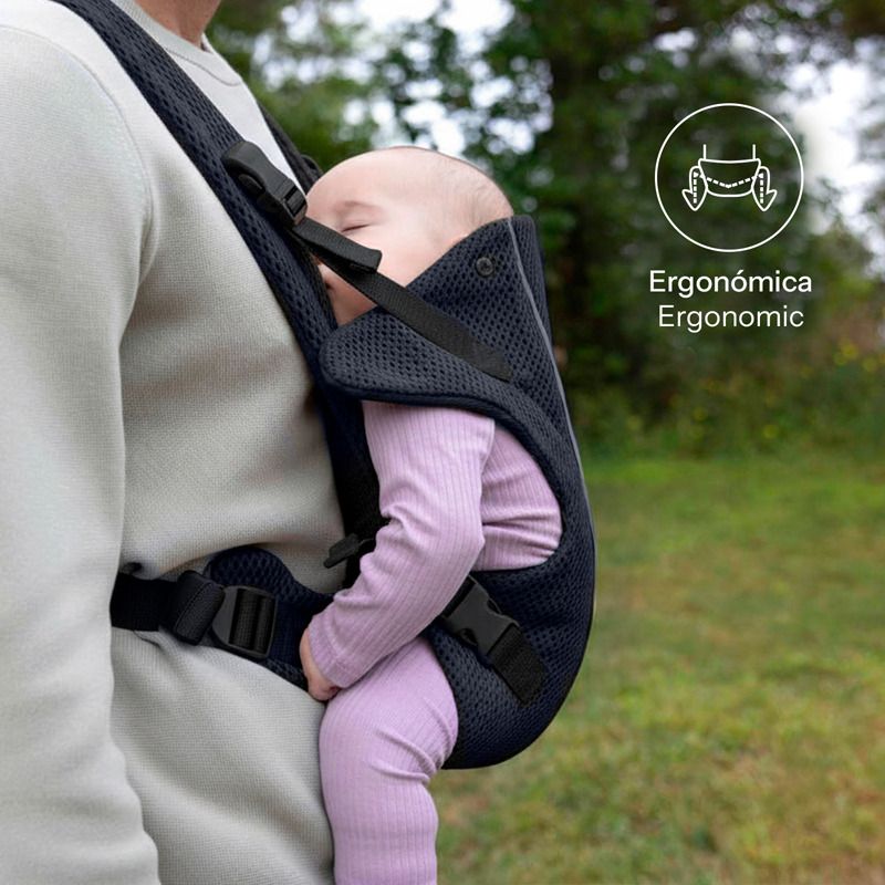 Sí. Respeta la posición natural del bebé con las caderas más altas que las rodillas (posición de ranita) y reparte el peso en los hombros y la cadera del porteador.
