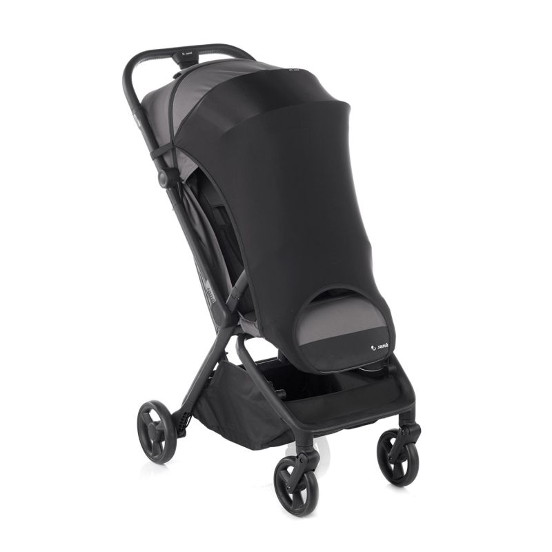 Pantalla protectora universal Sun Cover de Jané para silla de paseo. Protección solar UPF 50+ que bloquea la radiación ultravioleta. Diseño que permite circulación de aire óptima. Universal, fácil de colocar con ganchos cómodos. 2 colores: Black y Sand.