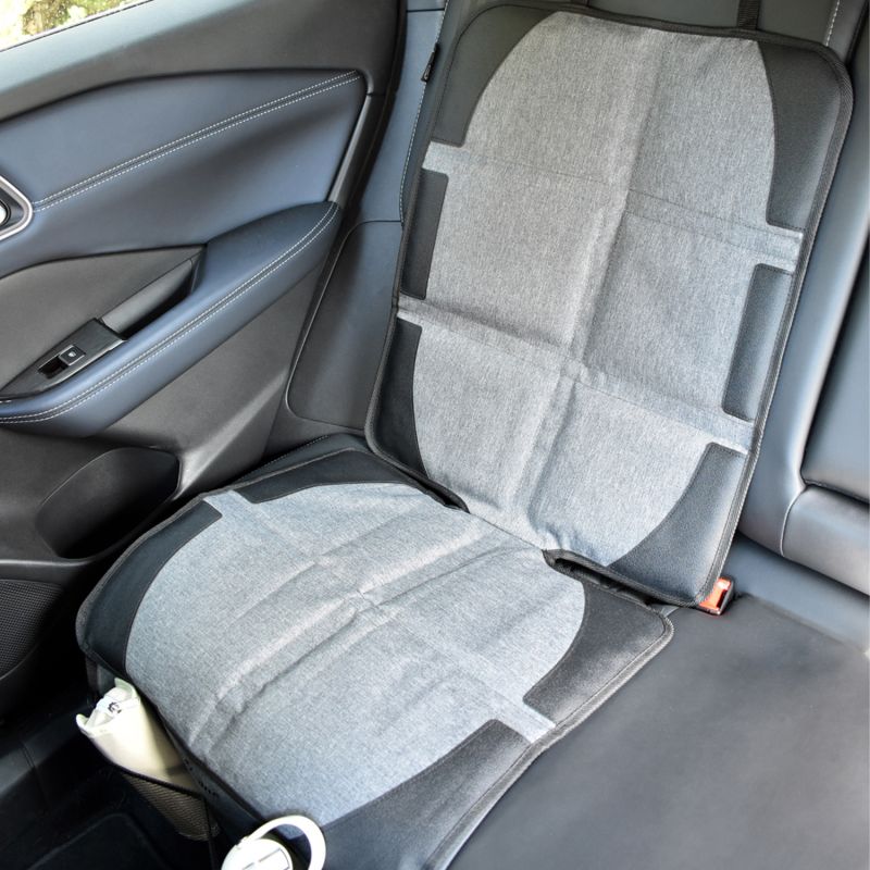 Protector de tapicería Jané con acolchado técnico que se coloca bajo la silla del niño para evitar marcas, roturas y roces en el asiento del coche. Tejido impermeable y antimanchas, bolsillo de almacenaje en la parte inferior y fijación con tiras regulables. Disponible en Gris (C01) y Negro (T62).