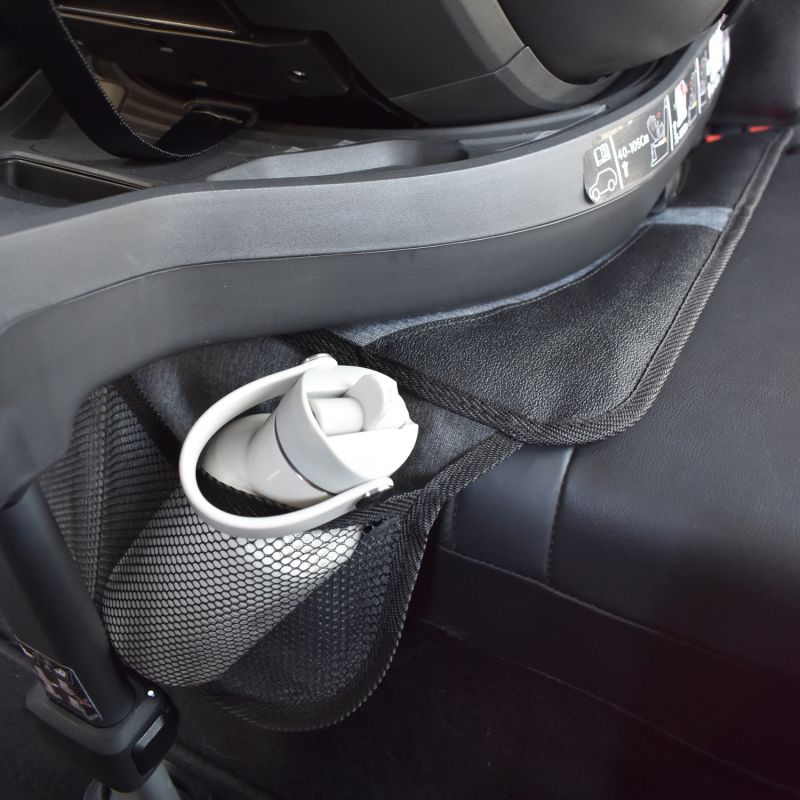 El bolsillo inferior es un extra práctico donde puedes guardar pañales, toallitas, cremas solares, juguetes pequeños o cualquier otro accesorio que quieras tener siempre en el coche. Queda oculto bajo la silla pero accesible cuando lo necesites.