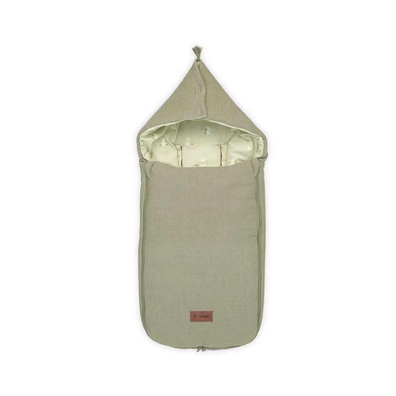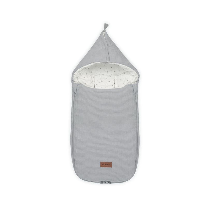 Saco multiestacional universal Mims+ Slight de Jané, compatible con todo tipo de capazos y portabebés desde +0 meses. Relleno interior extraíble, 100% algodón transpirable, capucha protectora y convertible en arrullo o colchoneta. Disponible en Dim Grey y Sage.