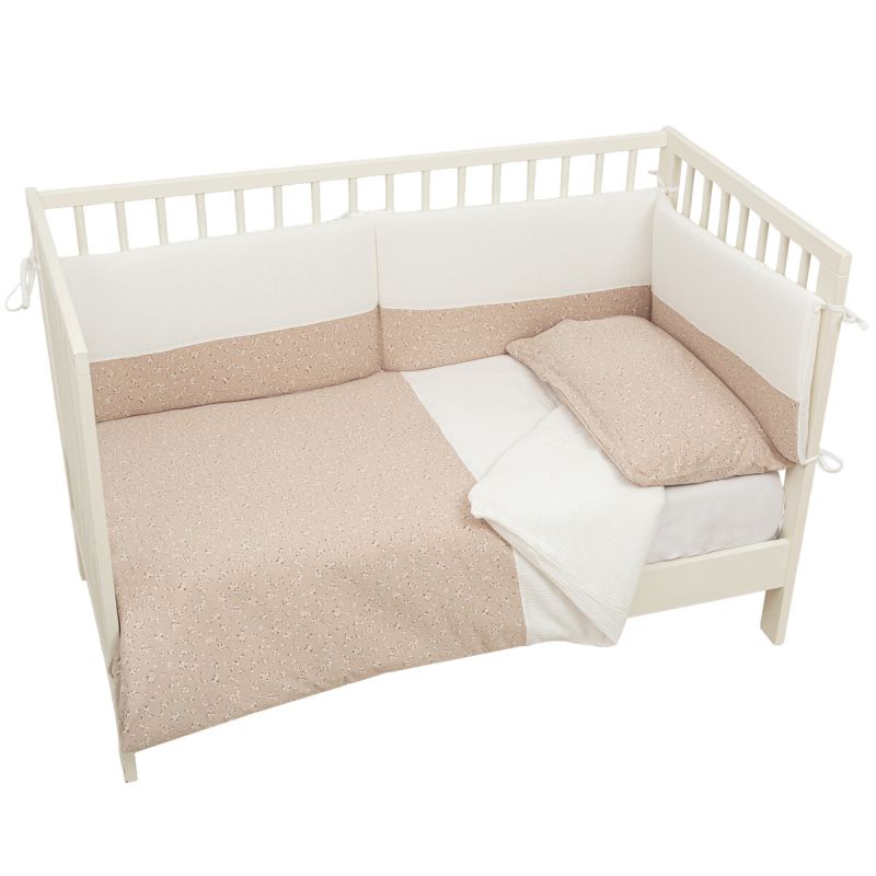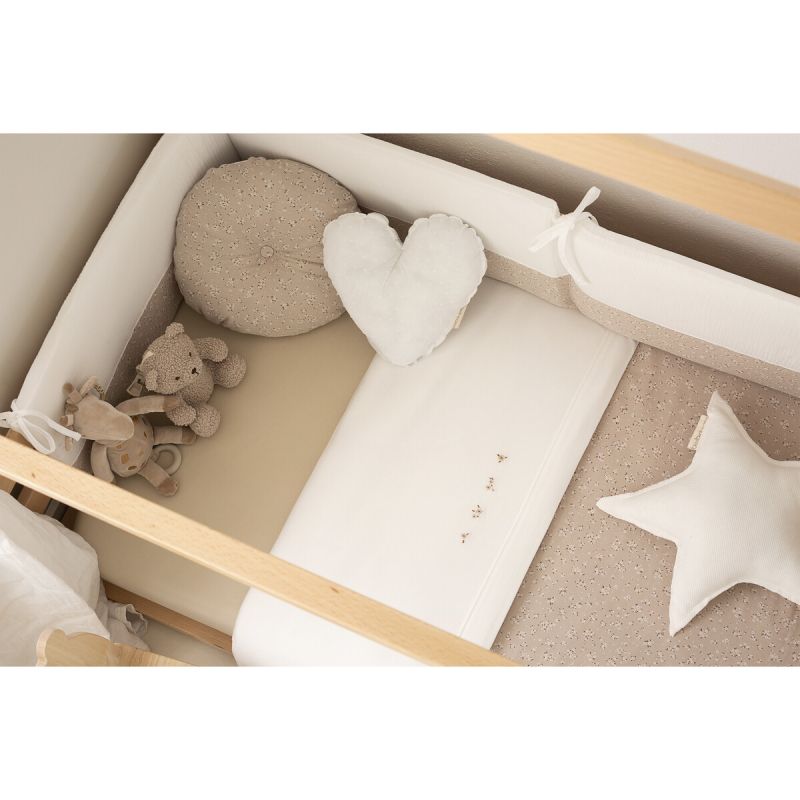 Es ideal para equipar desde cero una cuna de bebé de 60x120 cm, y está fabricado en España por Bimbidreams bajo estándares europeos de seguridad infantil.