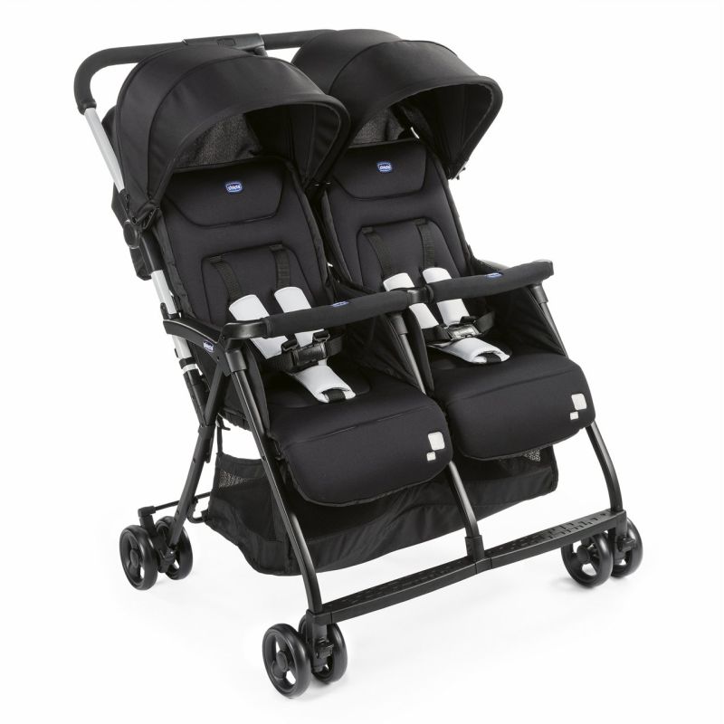 La Ohlala Twin de Chicco pesa solo 8 kg y es una de las sillas gemelares lado a lado más ligeras del mercado. Plegado tipo libro con una mano, capotas independientes con UV50+ y respaldos reclinables de forma independiente.