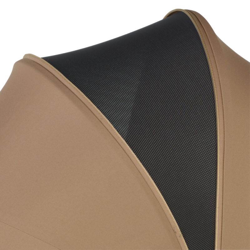 La capota extensible con protección solar UPF 50+ es repelente al agua, transpirable y cuenta con función wind stopper, protegiendo al bebé de los cambios climáticos.