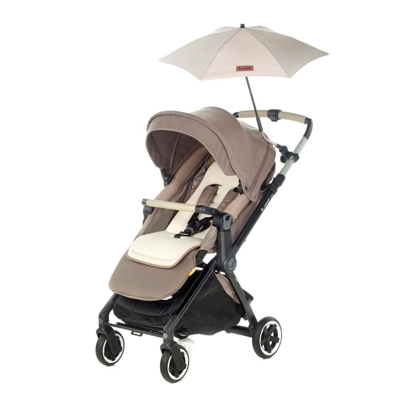 La sombrilla anti-UV+ Flexo de Jané es una sombrilla universal pensada para proteger al bebé del sol en el cochecito, en la silla de paseo o incluso en la playa. Su característica diferenciadora es el brazo flexible (de ahí "Flexo"): la caña es regulable en altura y dirección, de modo que puedes orientar el panel de tela exactamente donde el sol incide sobre el bebé, sin mover la silla ni recolocar al niño.