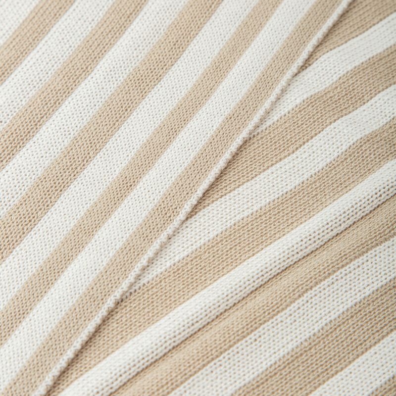 Toquilla de tricot 75x90 cm de la colección Bambú Stripes (beige) de Bimbidreams. Tejido de calidad certificado OEKO-TEX, fabricado en España.
