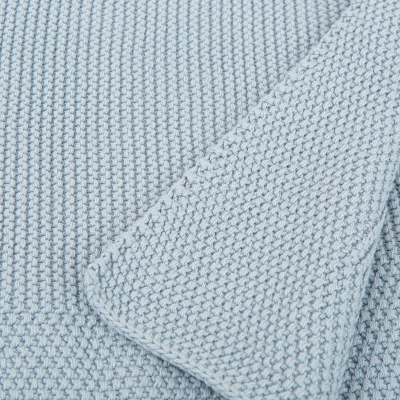 Toquilla de tricot 75x90 cm de la colección Liso (azul) de Bimbidreams. Tejido de calidad certificado OEKO-TEX, fabricado en España.