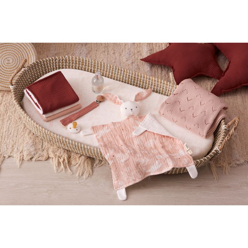 La toquilla de tricot bambú New Quilt de Bimbidreams es una manta de punto de 75x90 cm confeccionada en mezcla de bambú y algodón. La toquilla es una pieza clásica del ajuar del recién nacido: se usa para envolver al bebé, arroparlo en la cuna o en el carro, y para los primeros paseos al salir del hospital. Su tejido de tricot (punto) le da una textura cálida y elástica.