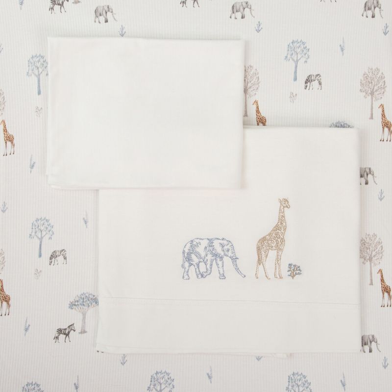 Juego completo de sábanas de tejido de punto para cuna mini de bebé de 50x80 cm, en la colección Tanzania de Bimbidreams. El tejido de punto aporta elasticidad, calidez y un tacto muy suave, ideal para la piel delicada del bebé. Incluye bajera ajustable, encimera y funda de almohada.