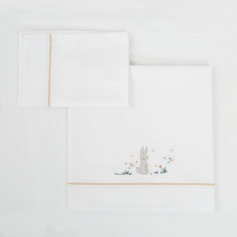 Tríptico sábanas 100% algodón cuna 60x120 de la colección Campo (blanco/lino) de Bimbidreams. Tejido de calidad certificado OEKO-TEX, fabricado en España.