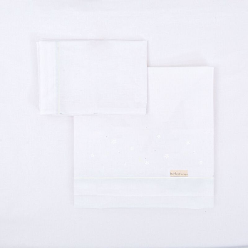 Tríptico sábanas 100% algodón cuna 60x120 de la colección Night (blanco) de Bimbidreams. Tejido de calidad certificado OEKO-TEX, fabricado en España.