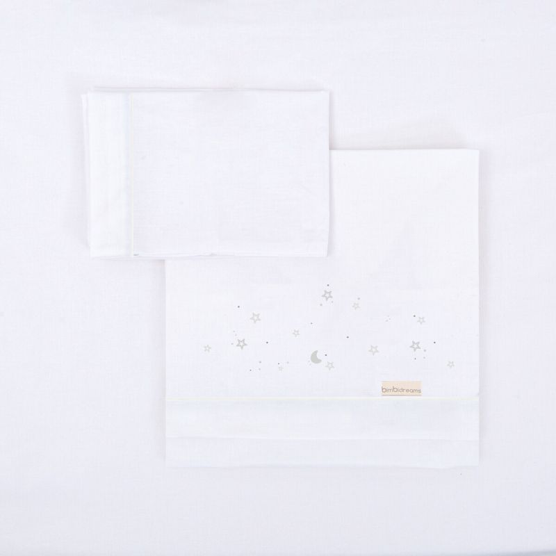 El tríptico de sábanas Night de Bimbidreams es un juego completo de sábanas para cuna de bebé de 60x120 cm, confeccionado en 100% algodón suave y transpirable. Incluye las tres piezas imprescindibles para vestir la cuna: bajera ajustable, encimera y funda de almohada, todas coordinadas en la misma colección.