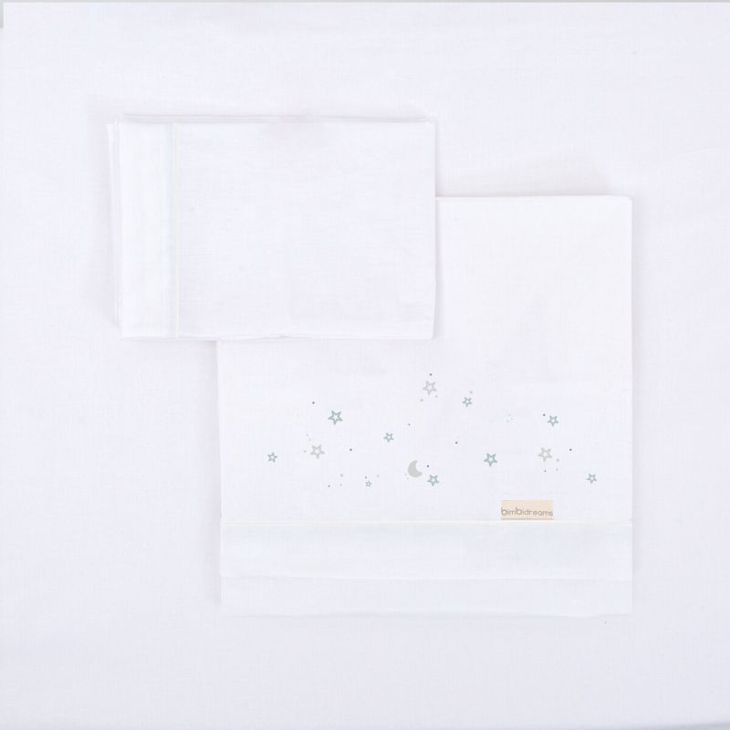 Tríptico sábanas 100% algodón cuna mini 50x80 de la colección Night (blanco/azul) de Bimbidreams. Tejido de calidad certificado OEKO-TEX, fabricado en España.