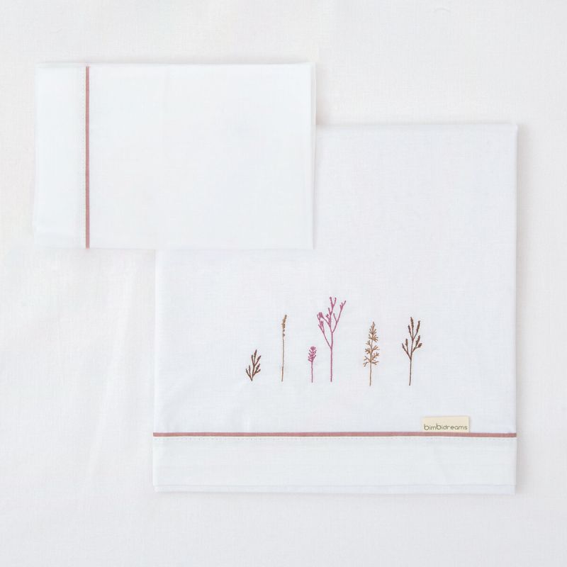 Tríptico sábanas 100% algodón cuna mini 50x80 de la colección Niza (blanco/lila) de Bimbidreams. Tejido de calidad certificado OEKO-TEX, fabricado en España.