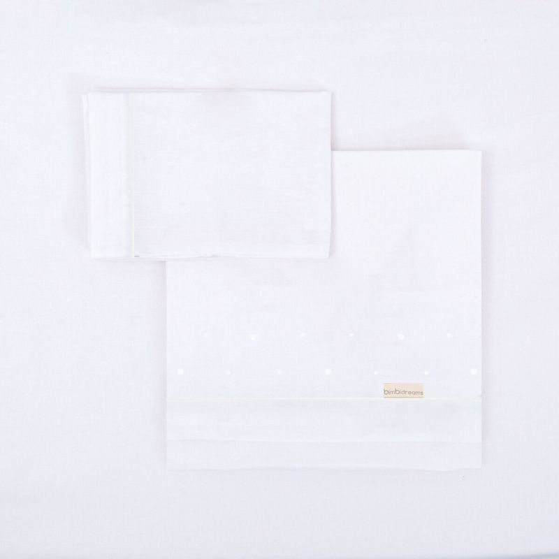 Tríptico sábanas 100% algodón cuna mini 50x80 de la colección Punts (blanco) de Bimbidreams. Tejido de calidad certificado OEKO-TEX, fabricado en España.