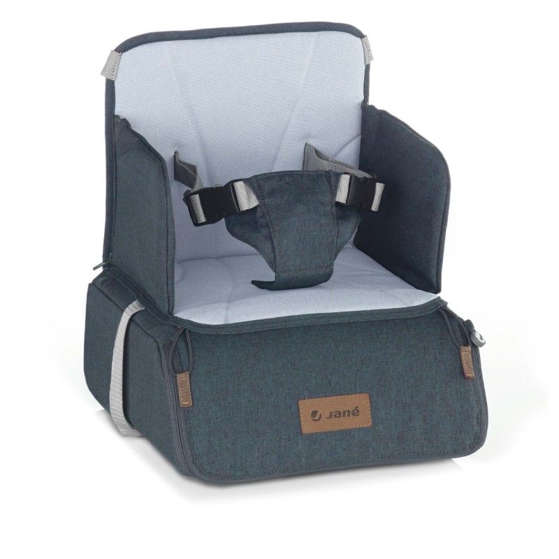 La Trona de Viaje Booster de Jané (referencia 060307) es un asiento elevador portátil que convierte cualquier silla normal en una trona apta para bebés de 6 a 36 meses (hasta 15 kg). Fabricada por Jané en Barcelona y homologada bajo la norma europea UNE-EN 16120:2013+A2:2018, combina dos funciones en un solo producto: asiento de viaje para llevar al restaurante o a casa de los abuelos, y bolso de almacenaje con gran compartimento interior para biberones, pañales o juguetes durante la salida. Su diseño con refuerzo lateral rígido patentado por Jané aporta seguridad adicional frente a inclinaciones laterales.